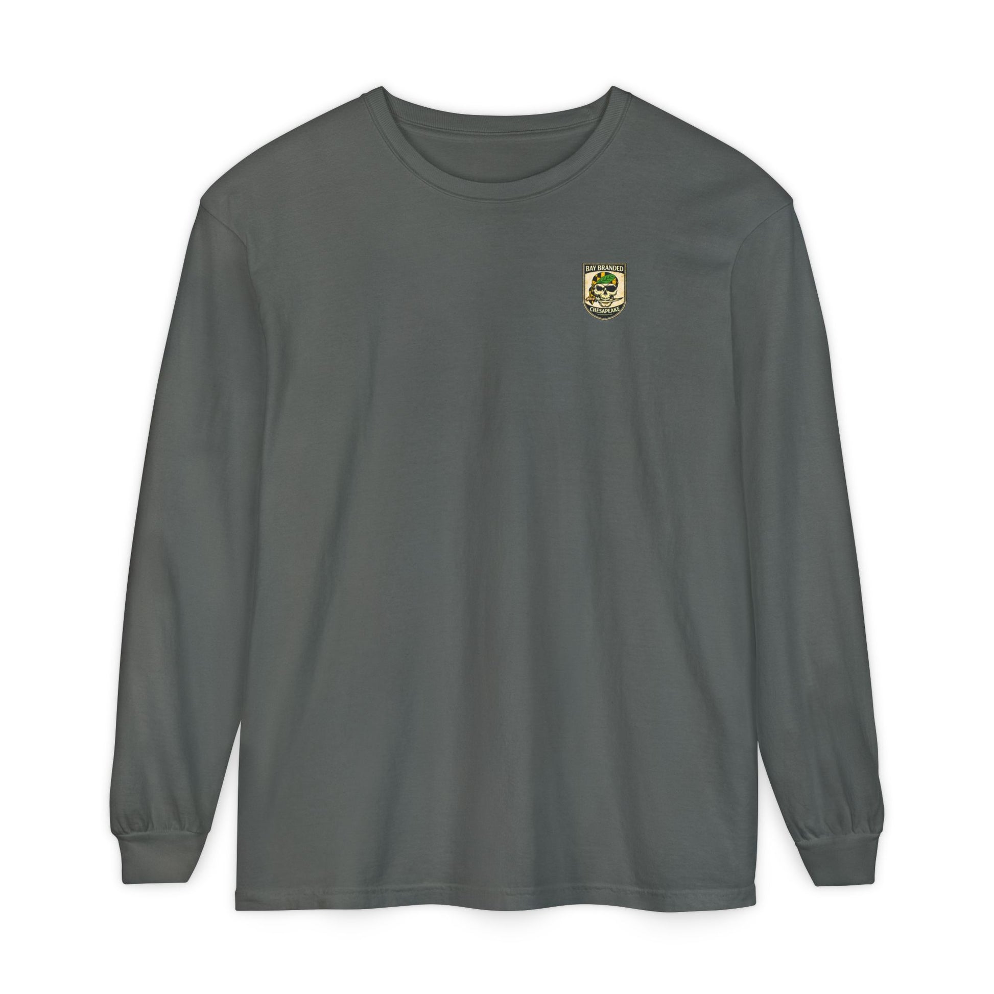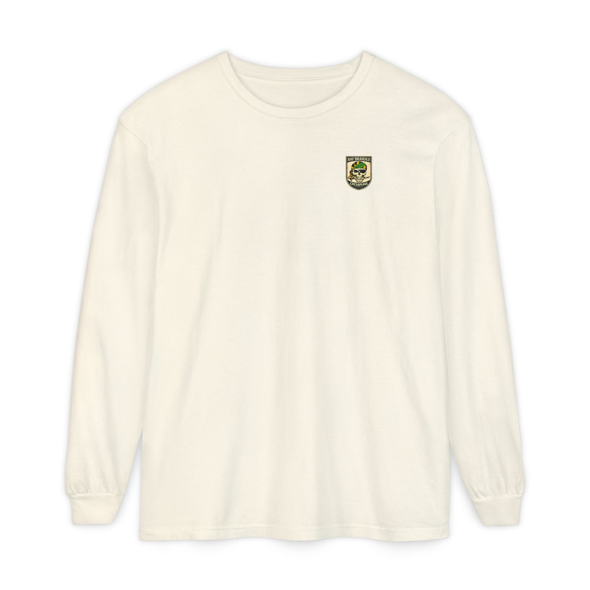 This relaxed, Comfort Colors® garment-dyed long sleeve tee carries that same familiar, lived-in feel — soft to the touch, built to last, and made for long days shaped by tide charts, working docks, and stories that get better every time they’re told. The added sleeves bring a little extra coverage for cool creek mornings, wind off open water, and those shoulder-season evenings when the Bay feels wide and quiet.