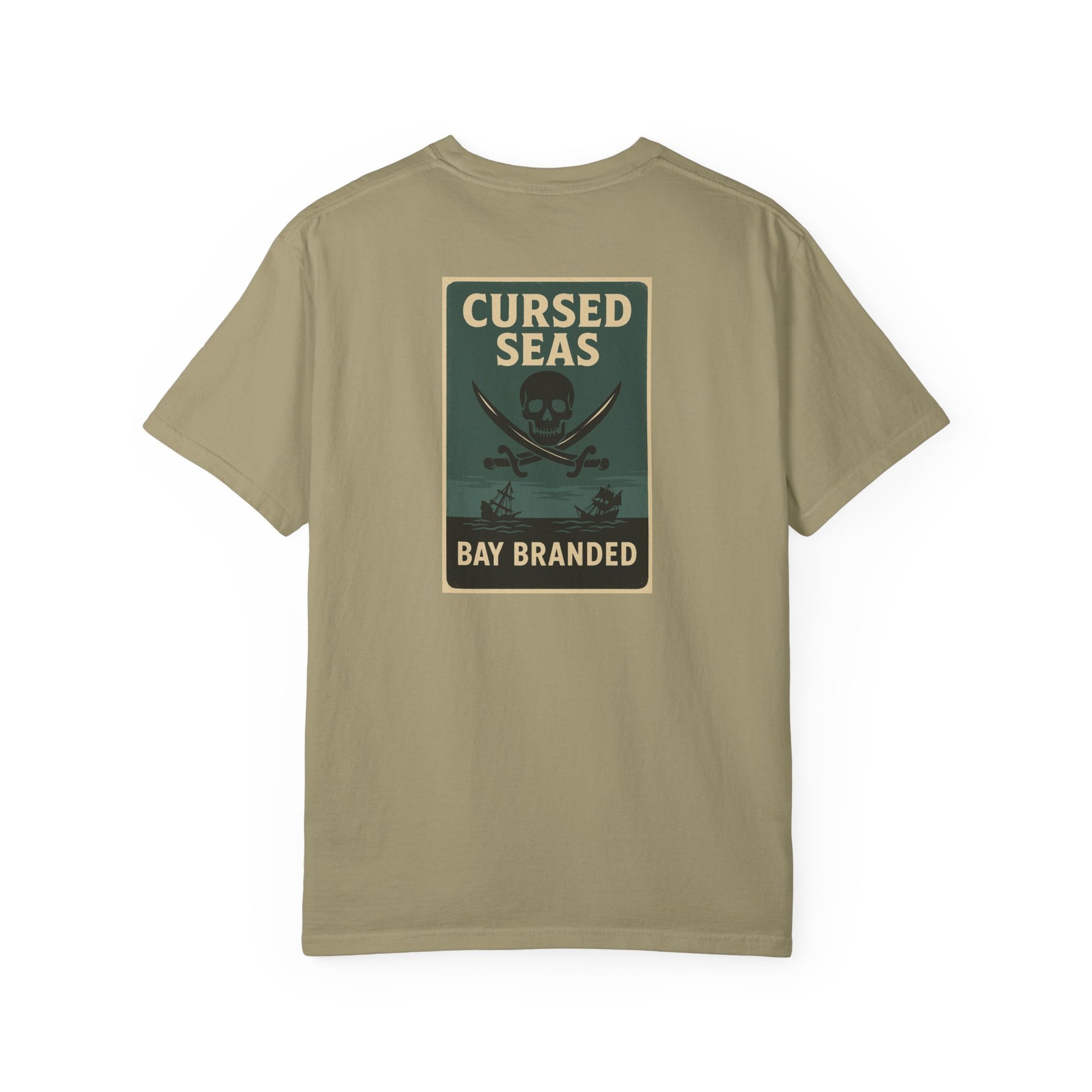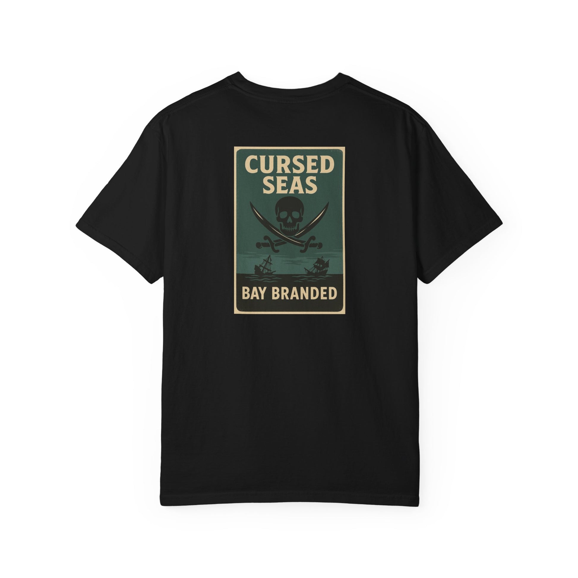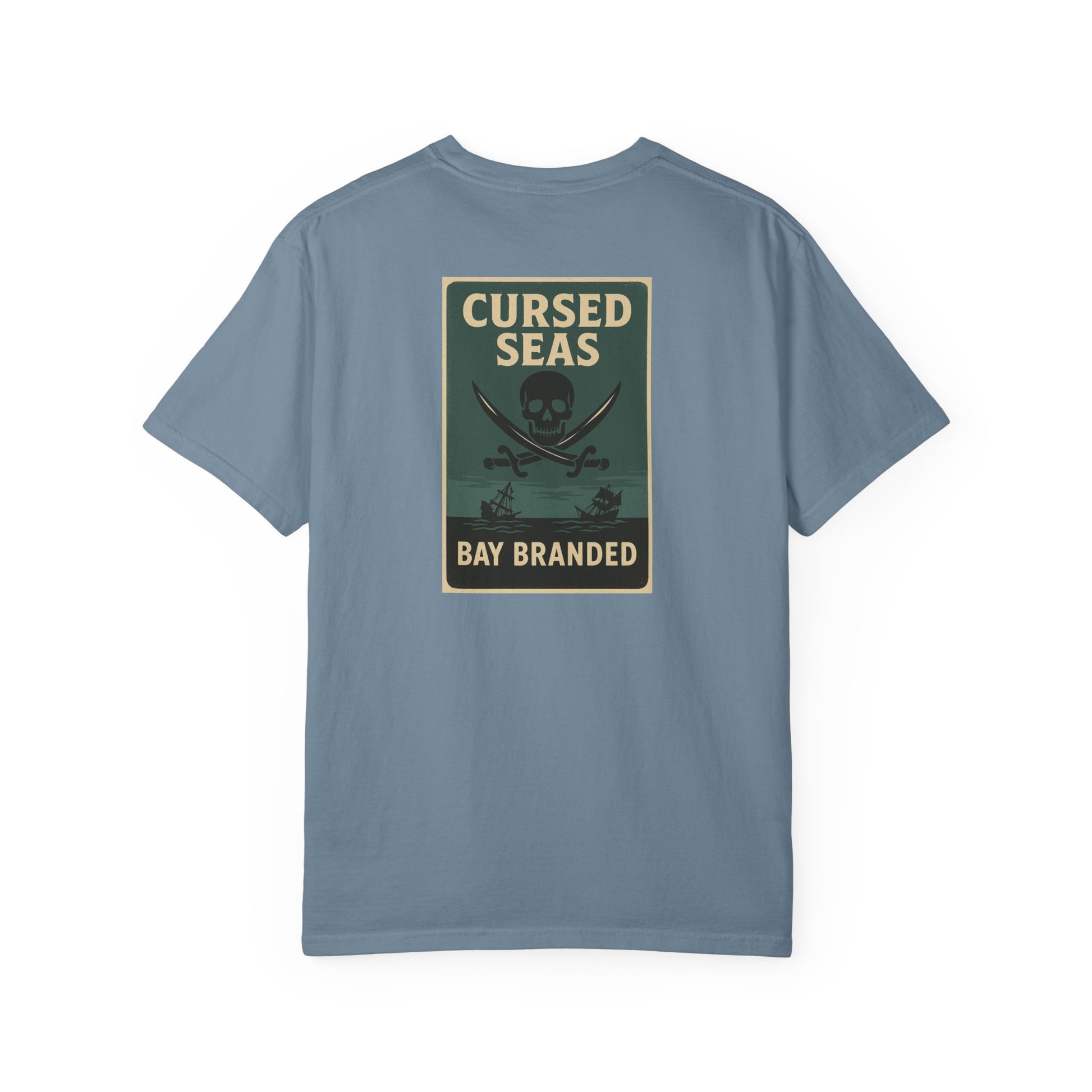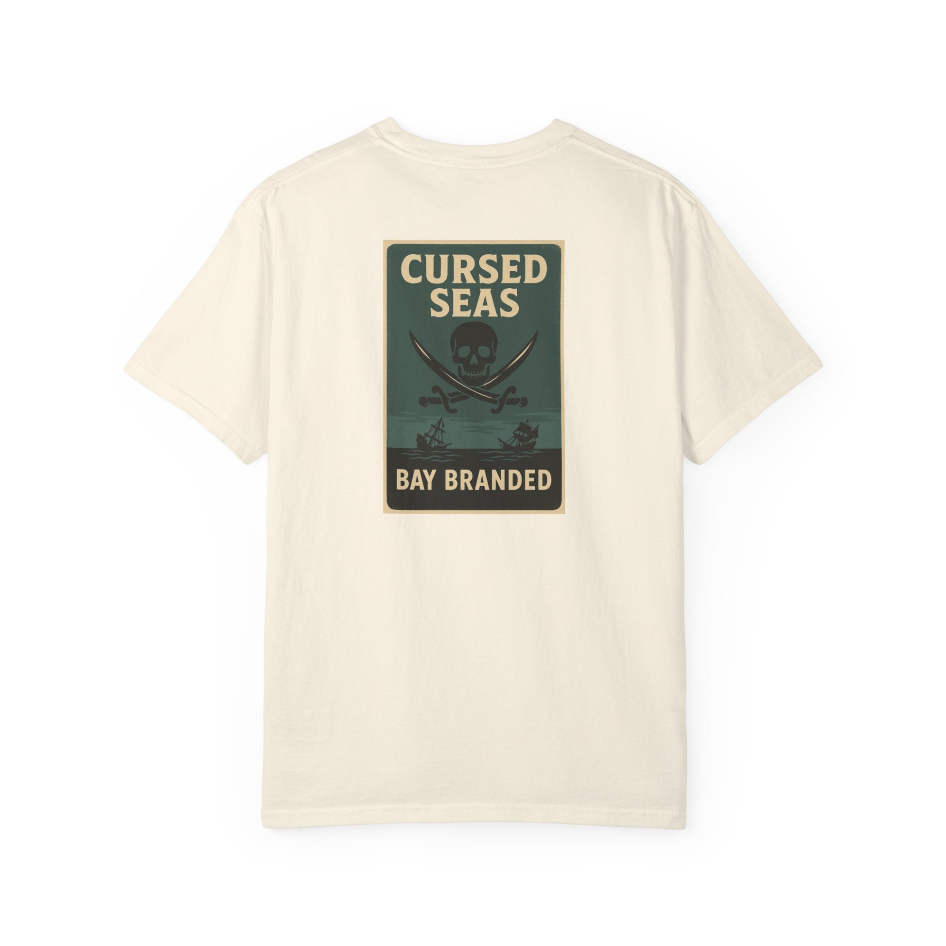 This relaxed, Comfort Colors® garment-dyed tee feels like it’s already logged miles across salt air and weathered decks. Soft from the first wear and built to last, it’s made for long days near the water, dim dock lights, and routes that don’t always show on the chart. The front carries the BAY BRANDED® mark—clean, confident, and unbothered. The back graphic draws from the spirit of the Cursed Seas, blending coastal iconography with a pirate-era edge that nods to danger, discovery, and respect for the waters that give and take.